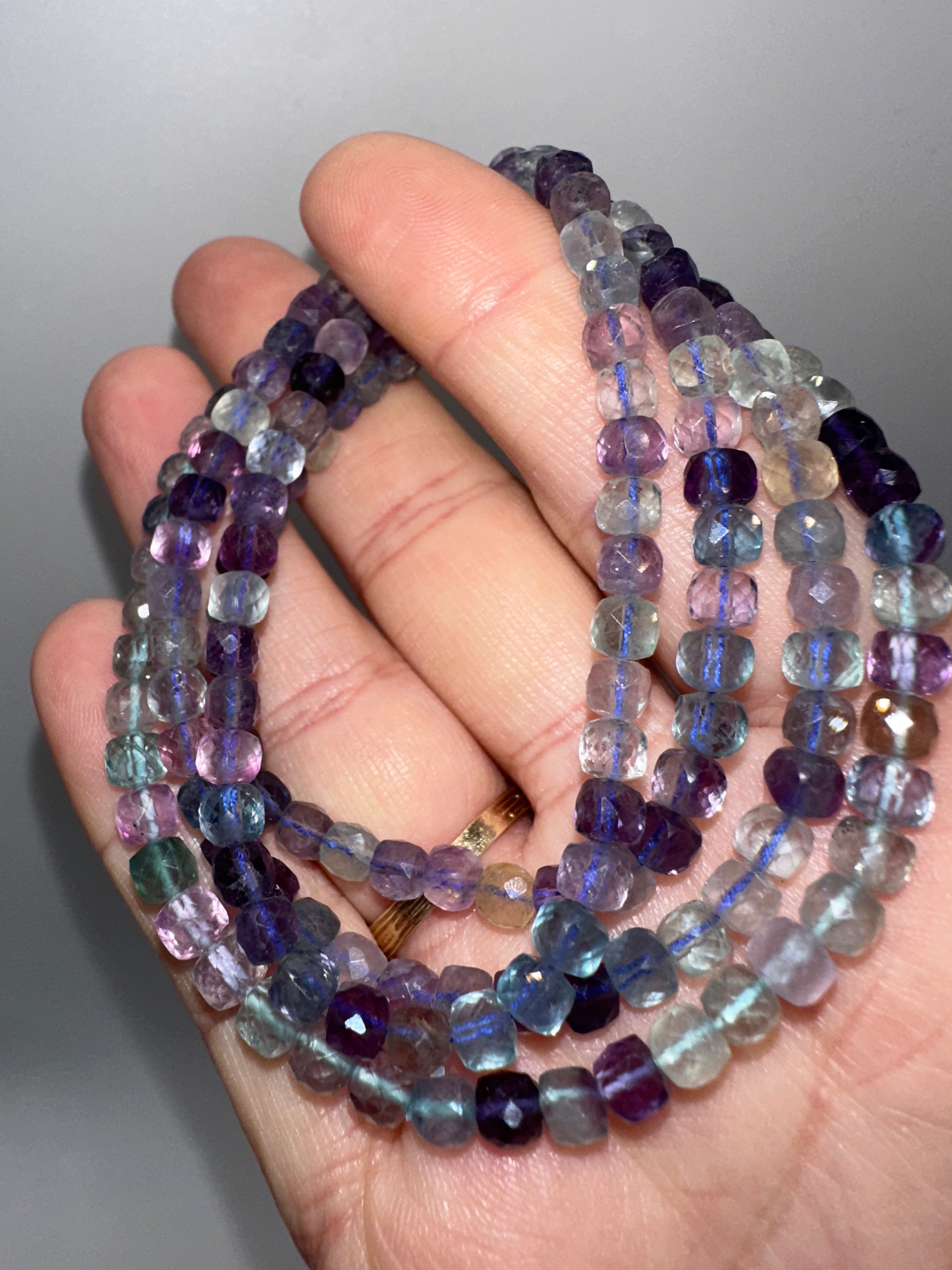 Fluorite is known for its soft, glass-like clarity and mesmerising bands of colour, ranging from calming greens to dreamy purples. Each piece is naturally unique, with layered tones that feel both tranquil and quietly powerful. Often associated with clarity and flow, fluorite carries a refined, almost ethereal beauty that makes it perfect for everyday wear.